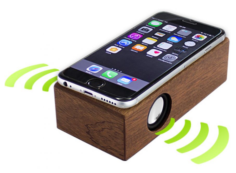 Parlante Grande Inducción Madera Nogal Parlante amplificador de sonido por Inducción, tamaño grande, de madera barnizada de Nogal. Ahora con mayor potencia y mejor calidad de sonido!! No necesita Bluetooth, Wi-Fi o conexión a cable. Amplifica el sonido una vez que se posa el celular sobre él, con un efecto de caja de resonancia. Compatible con cualquier modelo de teléfono celular. Contiene batería de ion-litio recargable incorporada. Incluye cable de sonido y cargador USB.